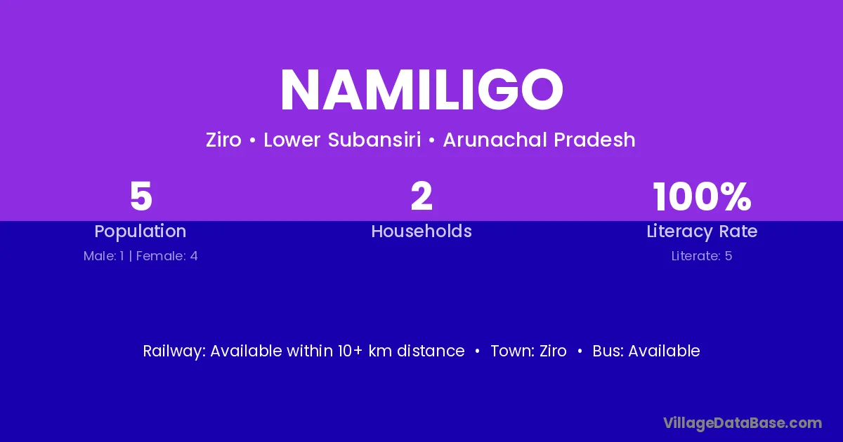 Namiligo village has a total population of 5 people, of which 1 are males and 4 are females.
