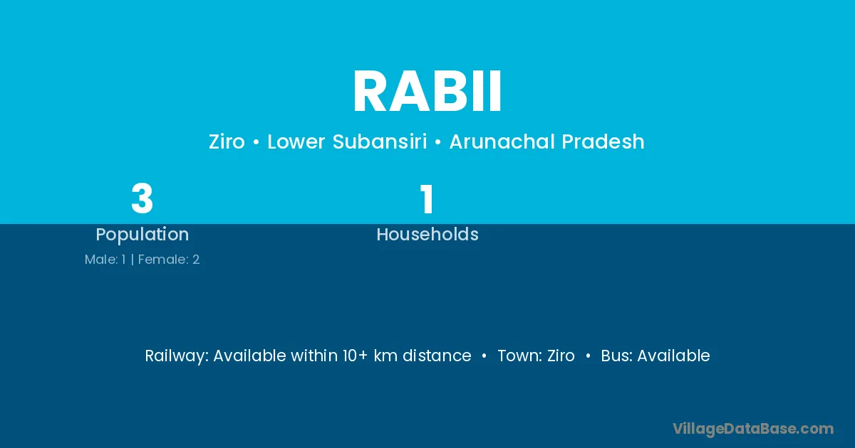 Rabii village has a total population of 3 people, of which 1 are males and 2 are females.