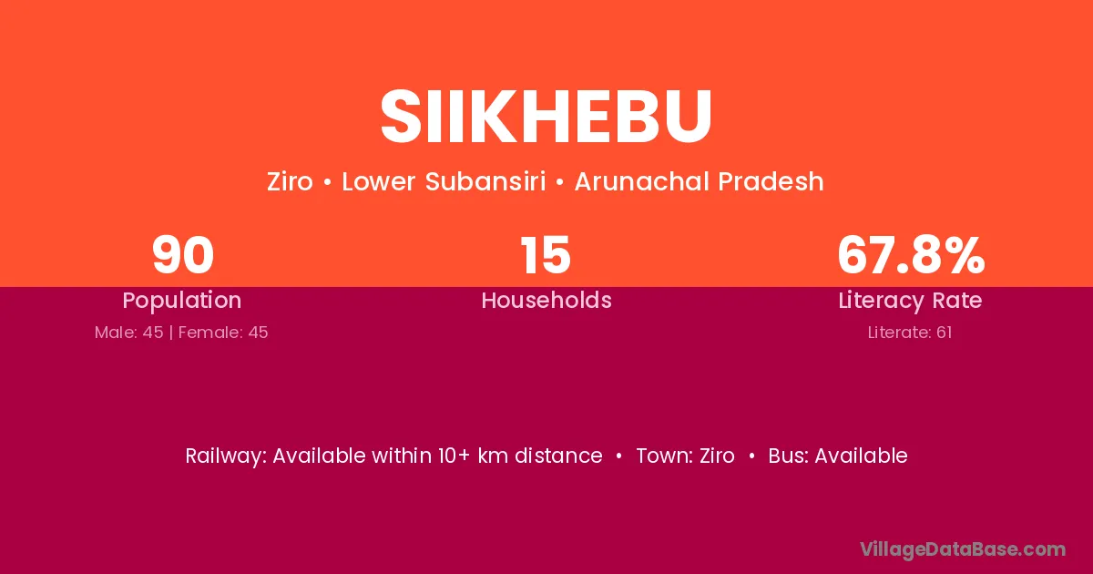 Siikhebu village has a total population of 90 people, of which 45 are males and 45 are females.