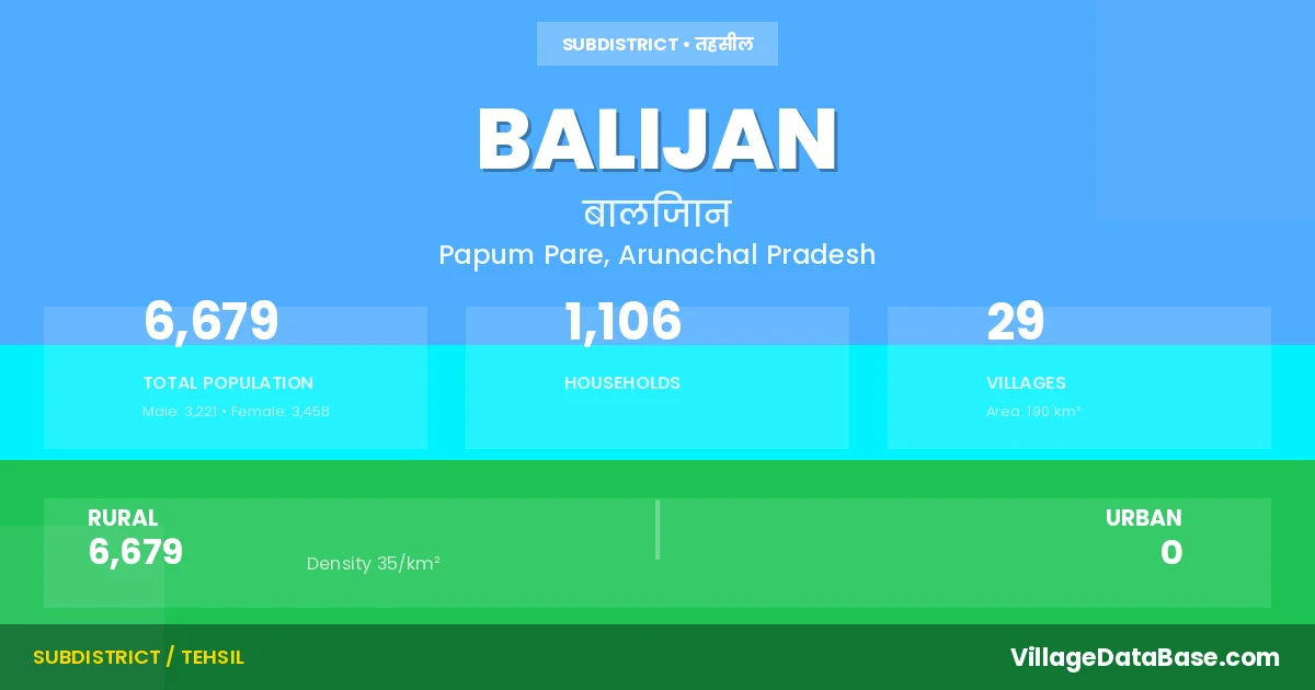 Balijan is a town and Circle in the Papum Pare district of the Arunachal Pradesh. In India, a Circle is a subdivision of a district responsible for the administration and revenue collection of a specific area within the district. Circles play a crucial role in the local governance structure, contributing significantly to the development and administration of their communities.