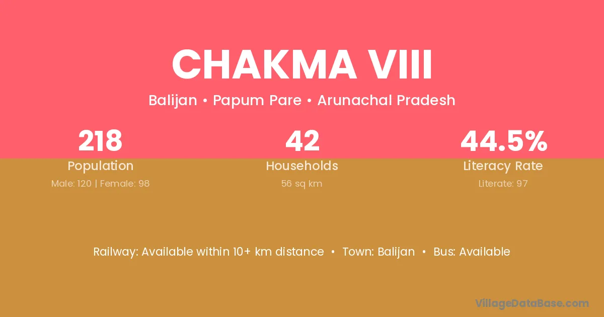 Chakma Viii village has a total population of 218 people, of which 120 are males and 98 are females.