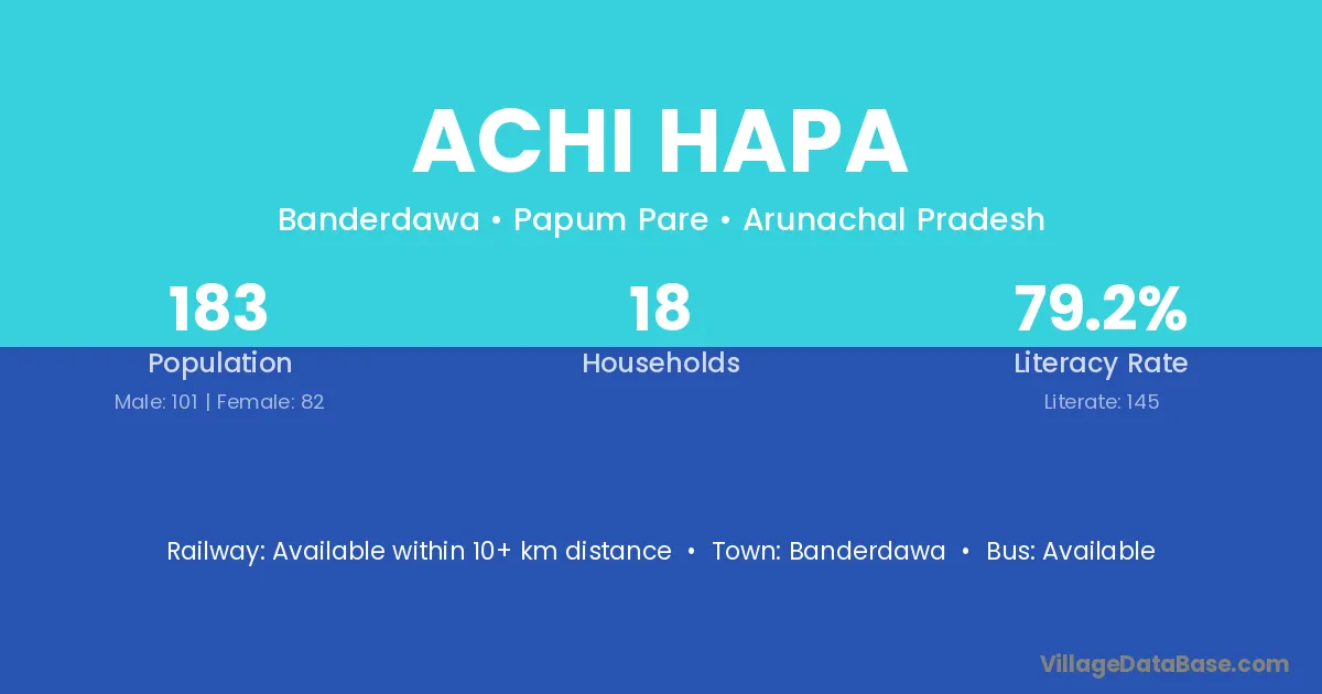Achi Hapa village has a total population of 183 people, of which 101 are males and 82 are females.