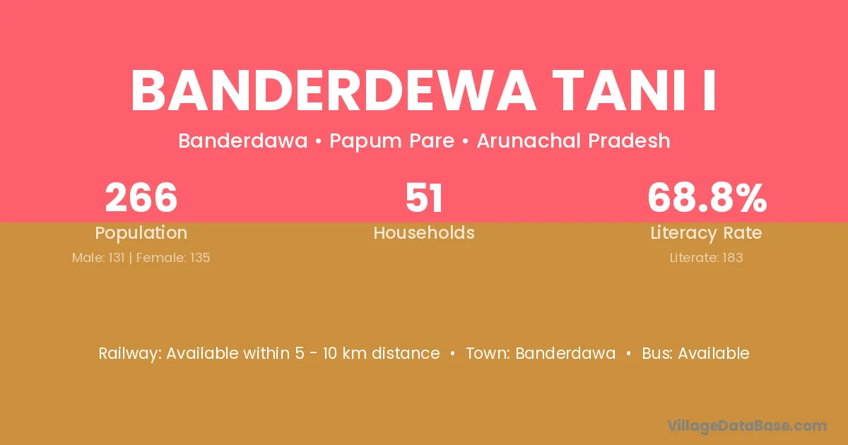 Banderdewa Tani I village has a total population of 266 people, of which 131 are males and 135 are females.