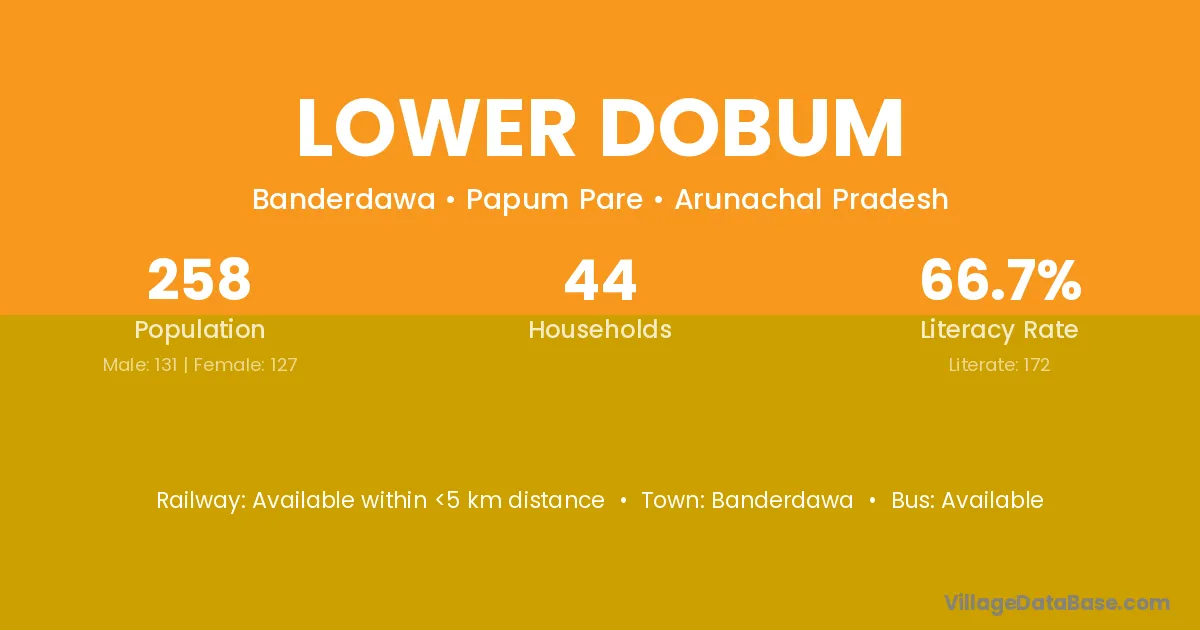 Lower Dobum village has a total population of 258 people, of which 131 are males and 127 are females.