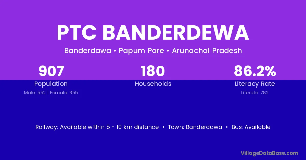 Ptc Banderdewa village has a total population of 907 people, of which 552 are males and 355 are females.