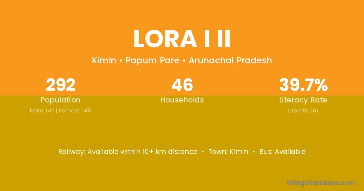 Lora I Ii village has a total population of 292 people, of which 147 are males and 145 are females.