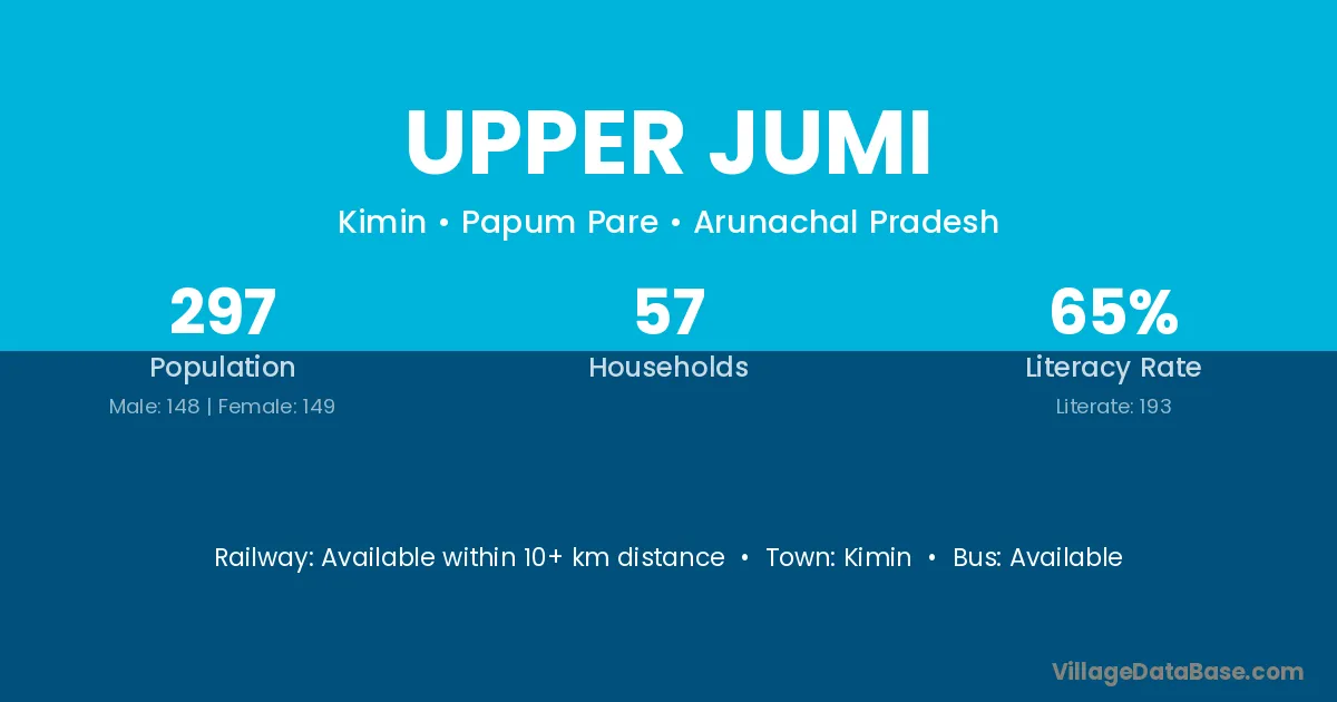 Upper Jumi village has a total population of 297 people, of which 148 are males and 149 are females.