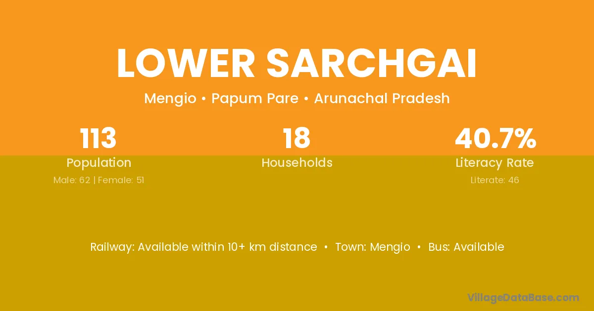 Lower Sarchgai village has a total population of 113 people, of which 62 are males and 51 are females.