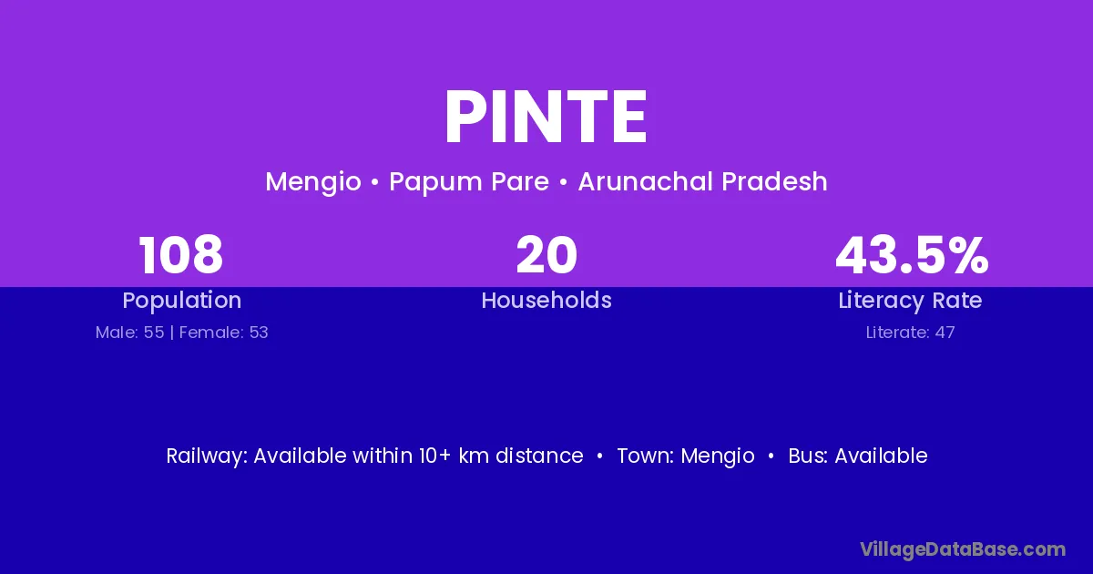 Pinte village has a total population of 108 people, of which 55 are males and 53 are females.