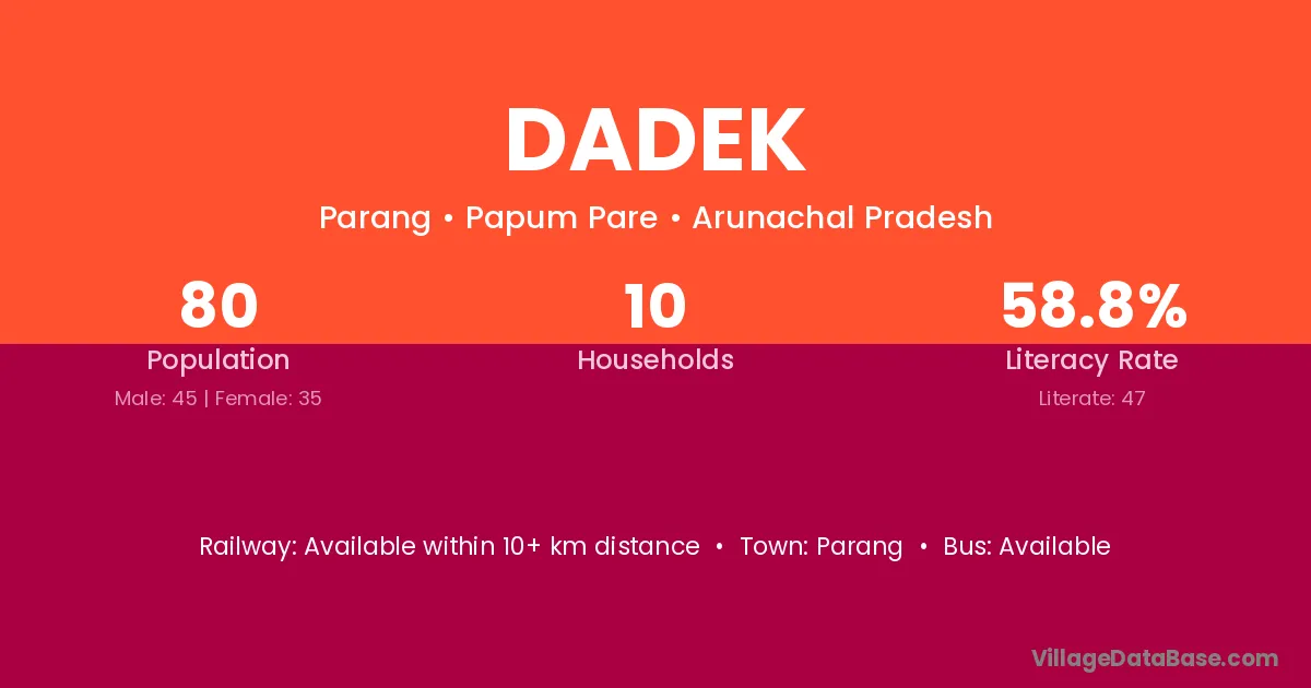 Dadek village has a total population of 80 people, of which 45 are males and 35 are females.