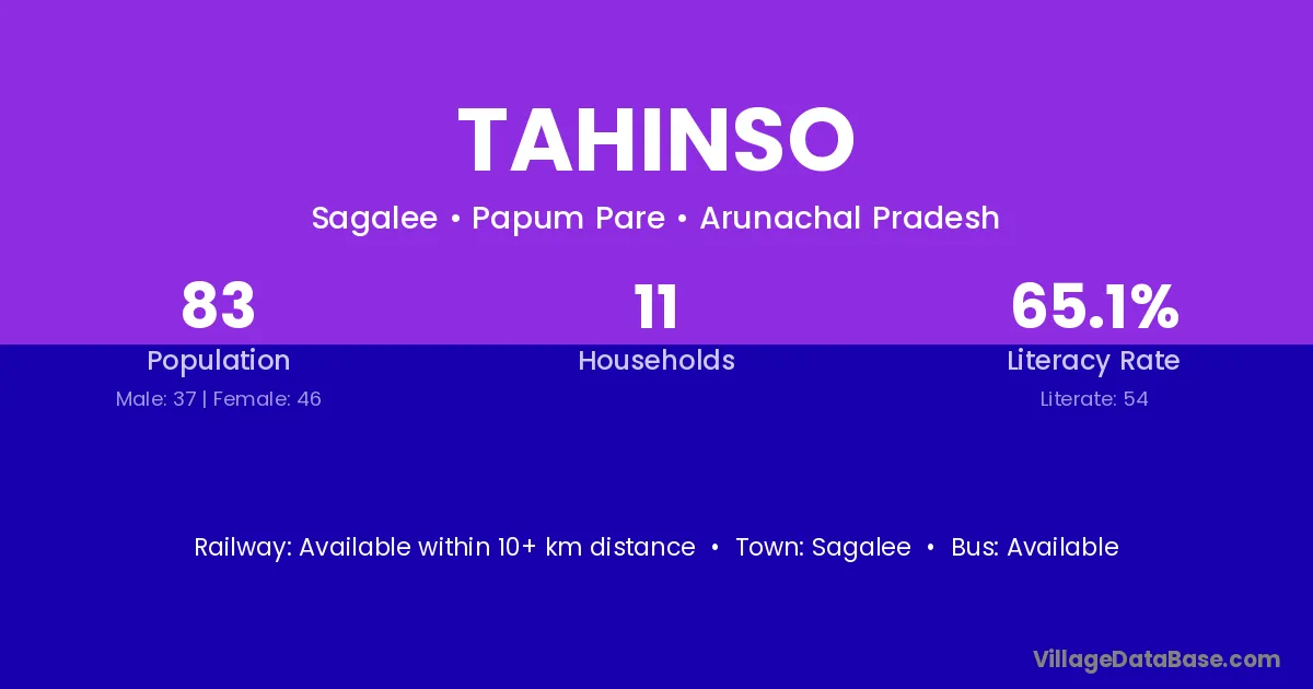 Tahinso village has a total population of 83 people, of which 37 are males and 46 are females.