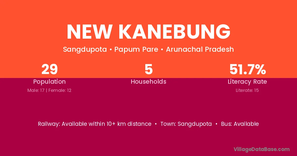 New Kanebung village has a total population of 29 people, of which 17 are males and 12 are females.