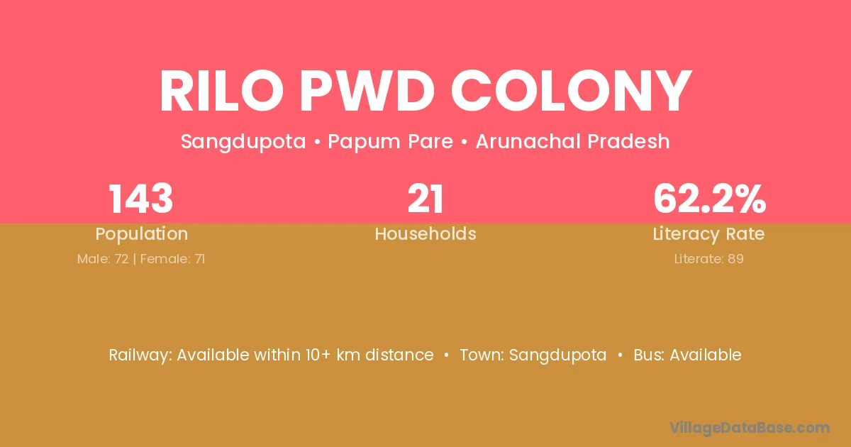 Rilo Pwd Colony village has a total population of 143 people, of which 72 are males and 71 are females.