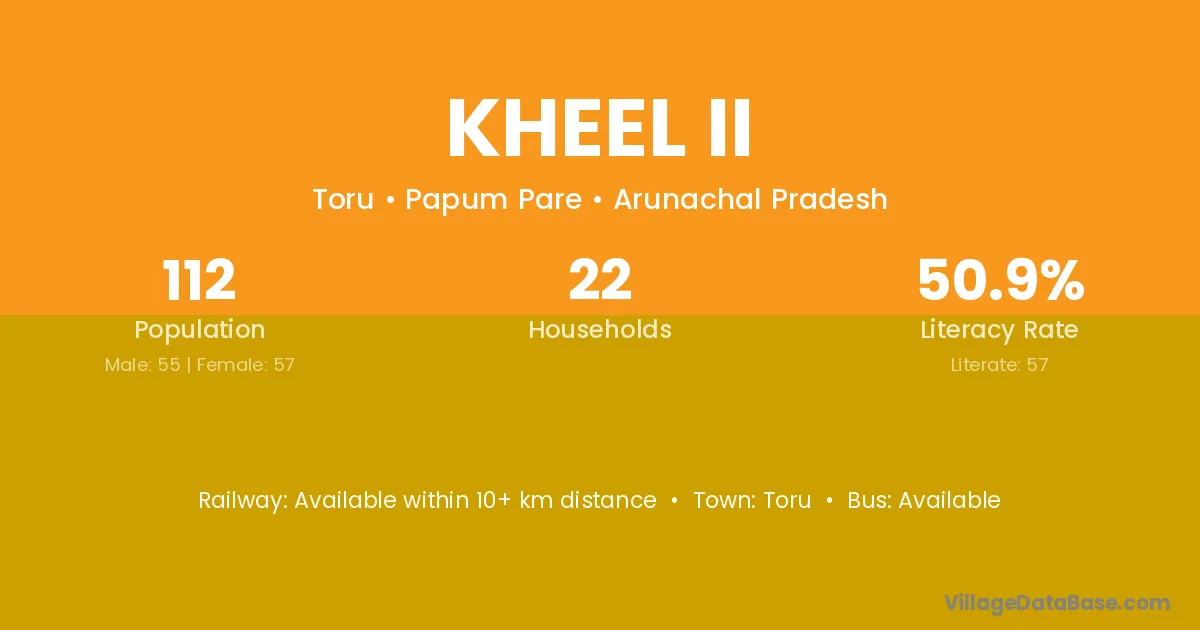 Kheel Ii village has a total population of 112 people, of which 55 are males and 57 are females.