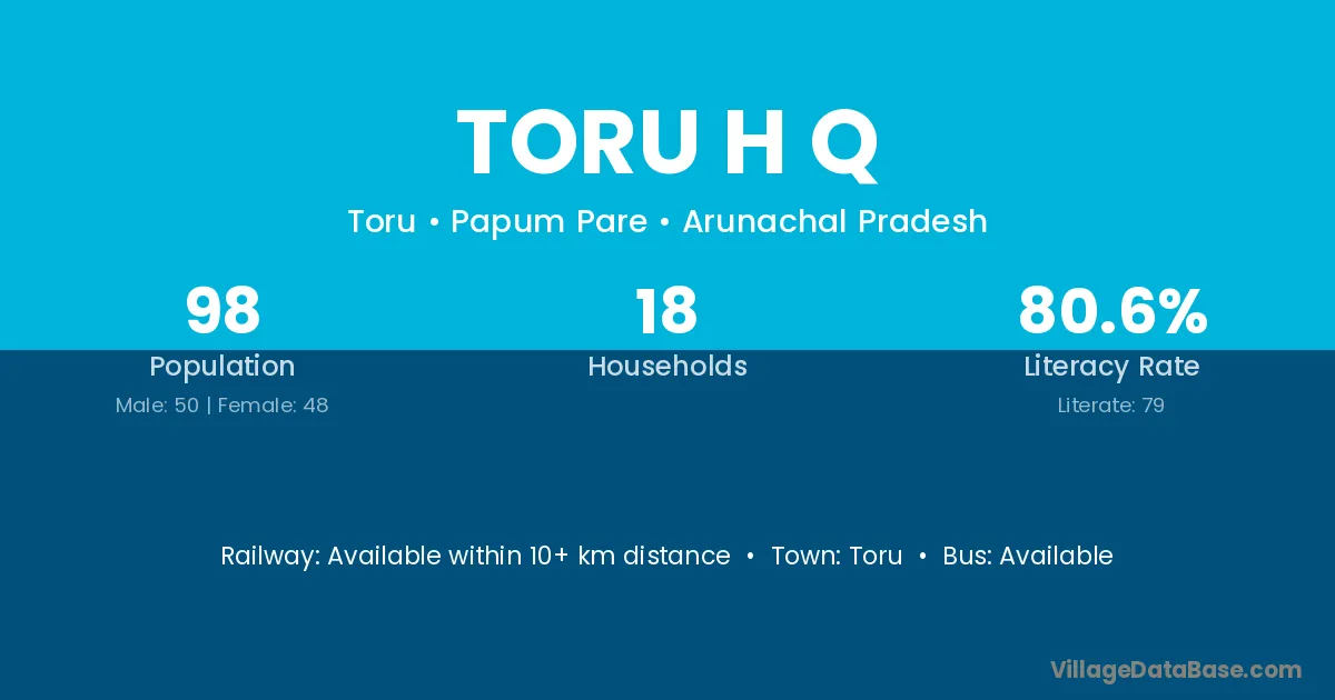 Toru H Q village has a total population of 98 people, of which 50 are males and 48 are females.