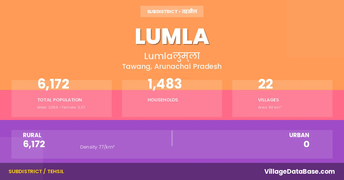 LUMLA Circle comprises about 22 villages. Below is a list of these villages along with information about their respective gram panchayats and the nearest town: