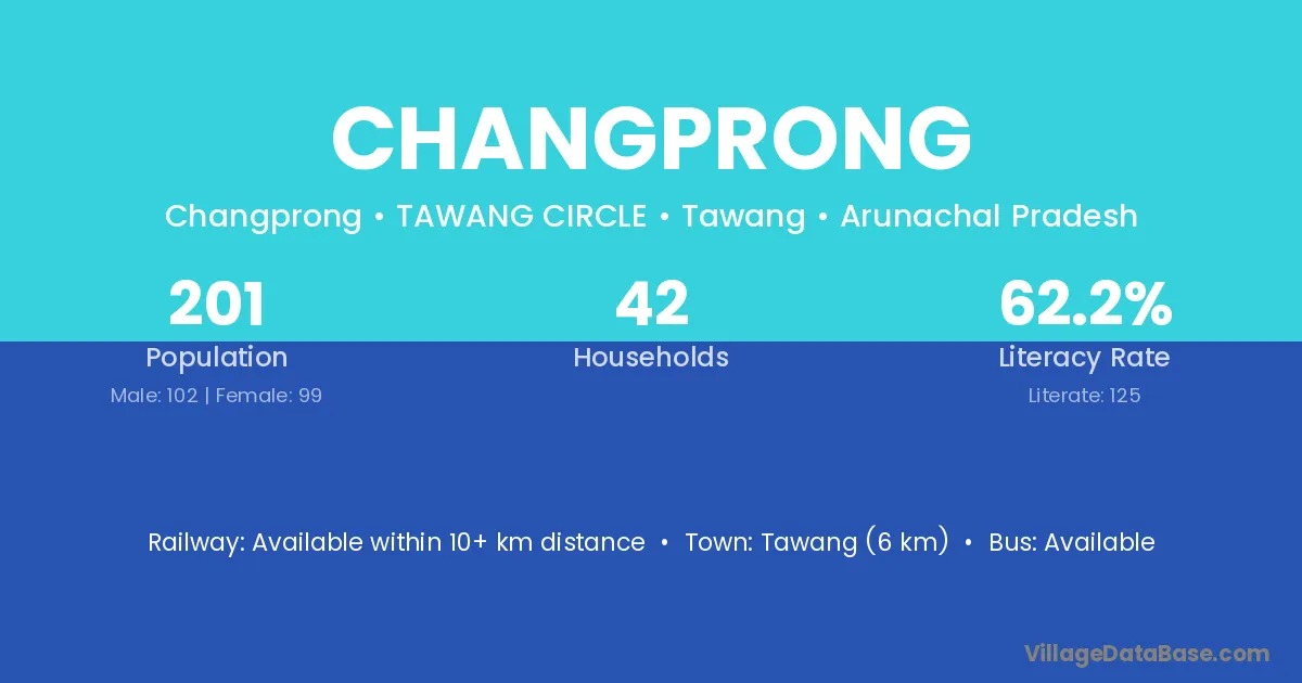 Changprong village has a total population of 201 people, of which 102 are males and 99 are females.