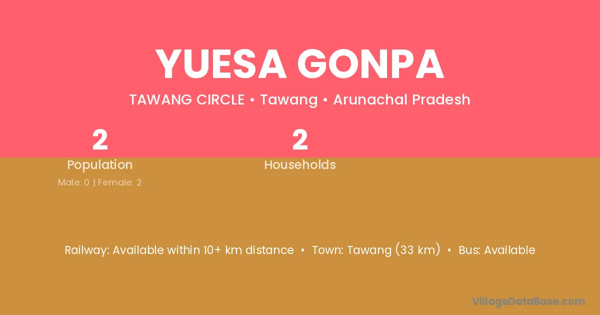 Yuesa Gonpa village has a total population of 2 people, of which 0 are males and 2 are females.
