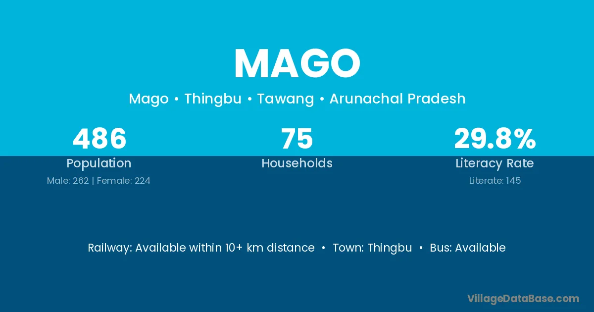 Mago village has a total population of 486 people, of which 262 are males and 224 are females.