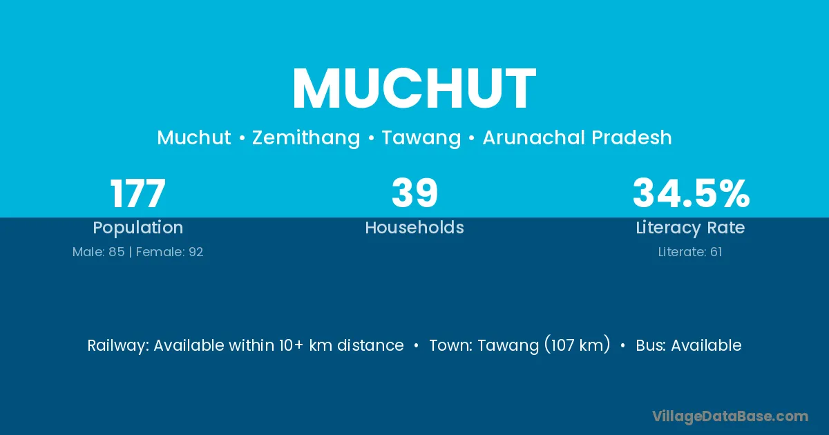 Tawang (107 km) is the nearest town to Muchut village for major economic activities and is located approximately 107 km away.