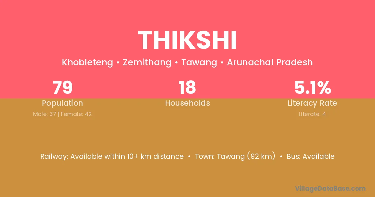 Thikshi village has a total population of 79 people, of which 37 are males and 42 are females.