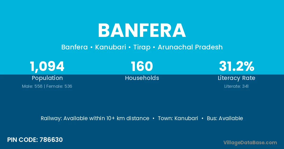 Banfera village has a total population of 1,094 people, of which 558 are males and 536 are females.