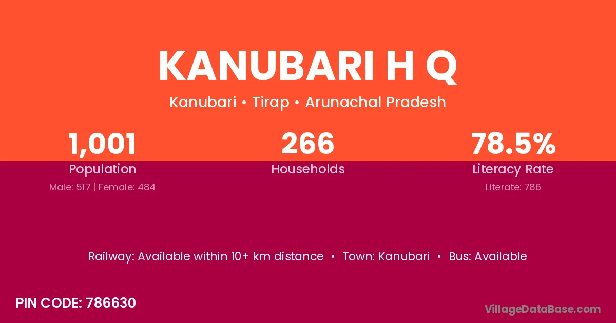 Kanubari H Q village has a total population of 1,001 people, of which 517 are males and 484 are females.