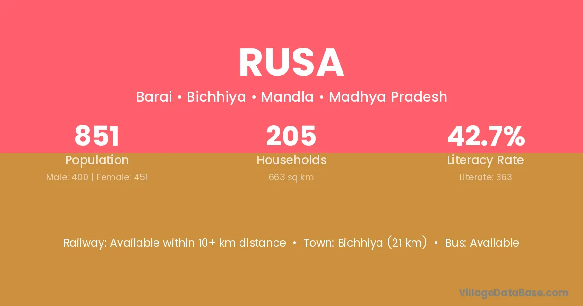 According to Census 2011 information, the village code of Rusa village is 786631.