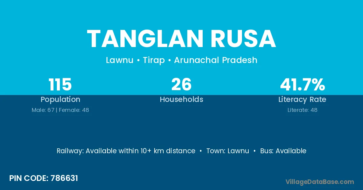 Tanglan Rusa village has a total population of 115 people, of which 67 are males and 48 are females.