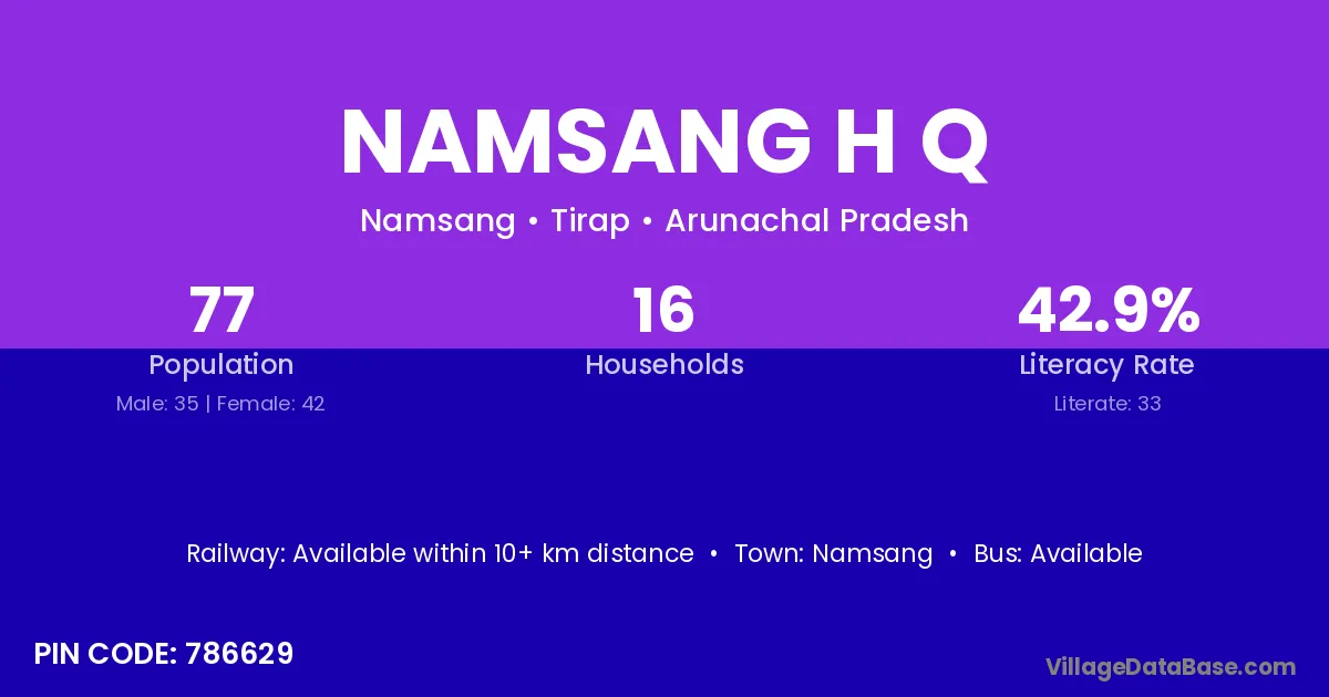 The literacy rate of Namsang H Q village is 42.86%. Male literacy stands at 51.43% and female literacy at 35.71%.