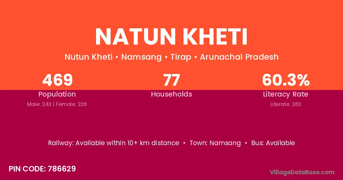 Natun Kheti village has a total population of 469 people, of which 243 are males and 226 are females.