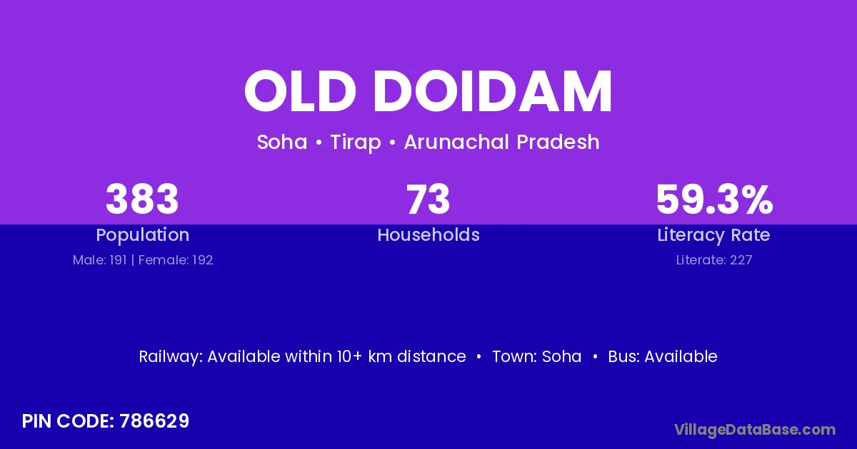 Old Doidam village has a total population of 383 people, of which 191 are males and 192 are females.