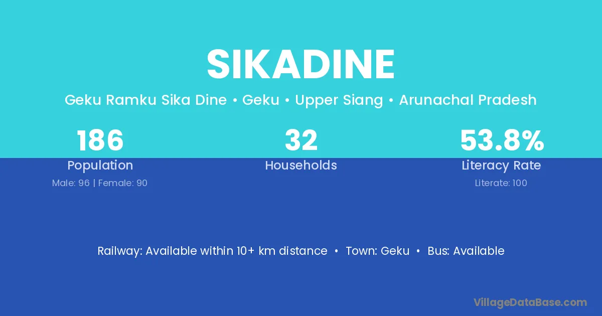 Sikadine village has a total population of 186 people, of which 96 are males and 90 are females.