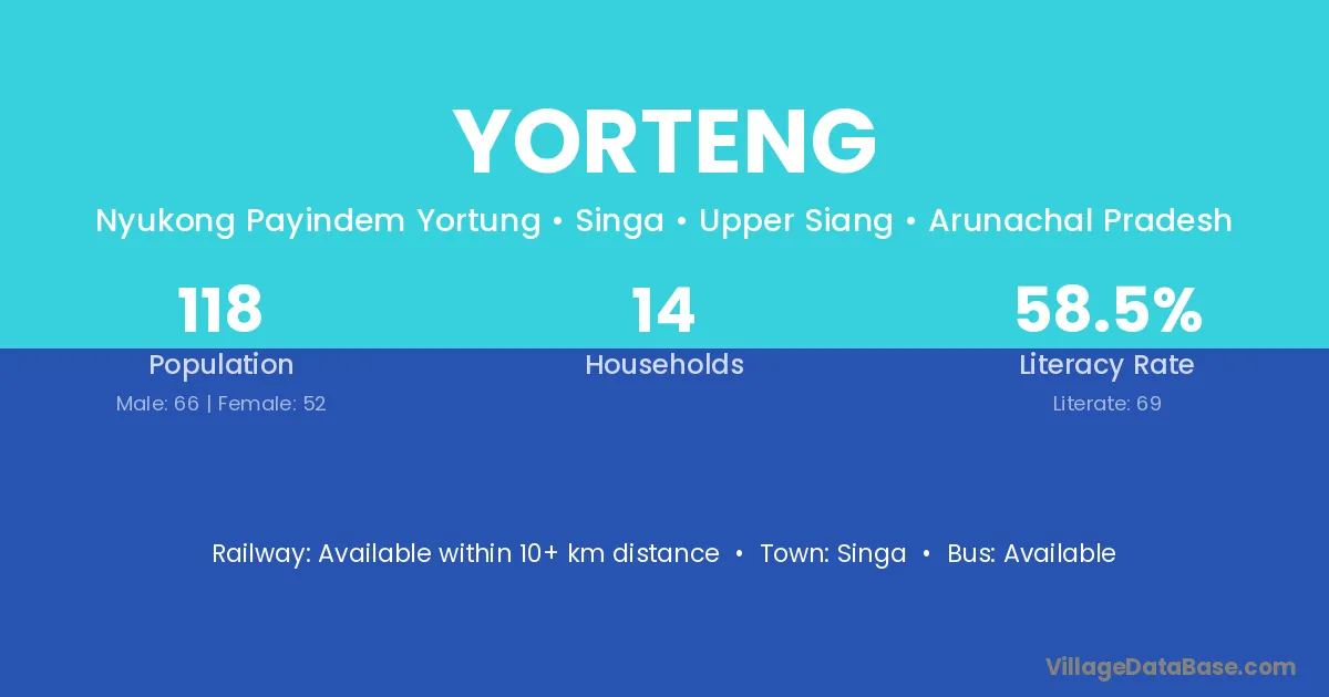 Yorteng village has a total population of 118 people, of which 66 are males and 52 are females.