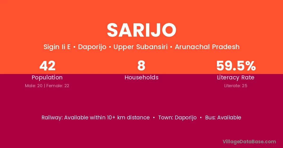 Sarijo village has a total population of 42 people, of which 20 are males and 22 are females.
