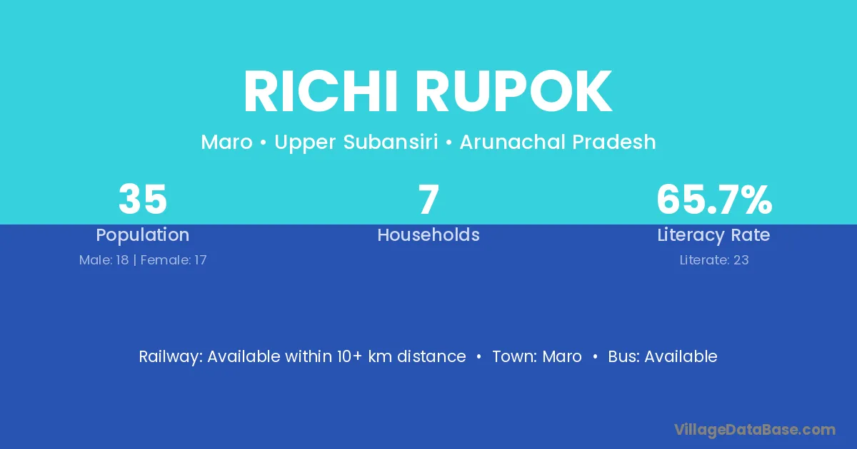 Richi Rupok village has a total population of 35 people, of which 18 are males and 17 are females.