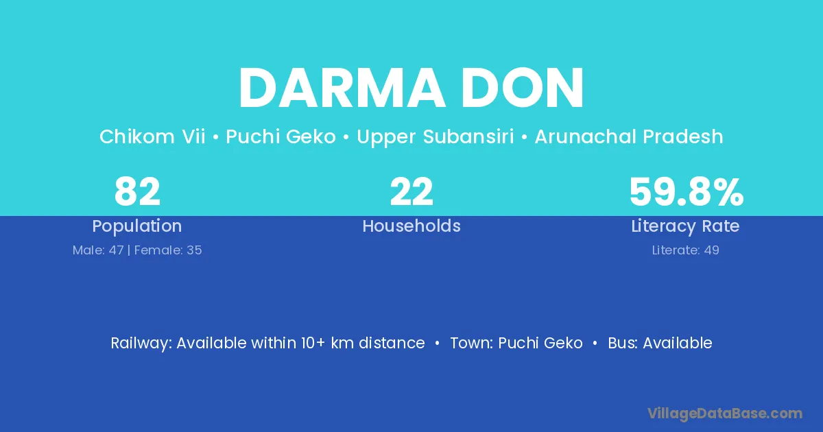 Darma Don village has a total population of 82 people, of which 47 are males and 35 are females.