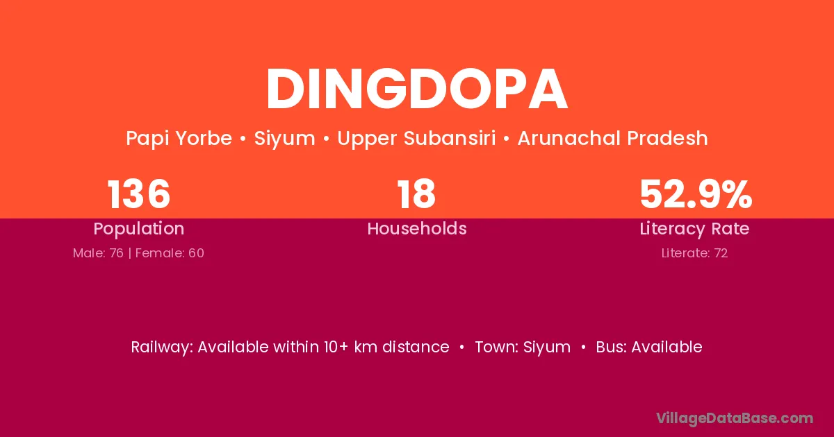 Dingdopa village has a total population of 136 people, of which 76 are males and 60 are females.
