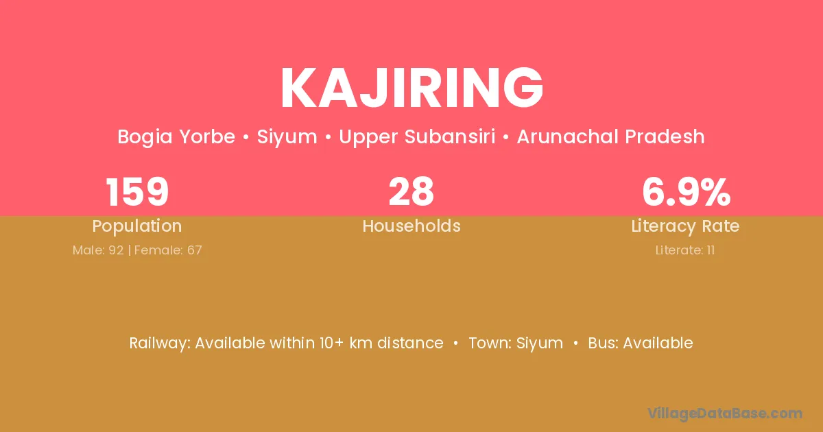Kajiring village has a total population of 159 people, of which 92 are males and 67 are females.