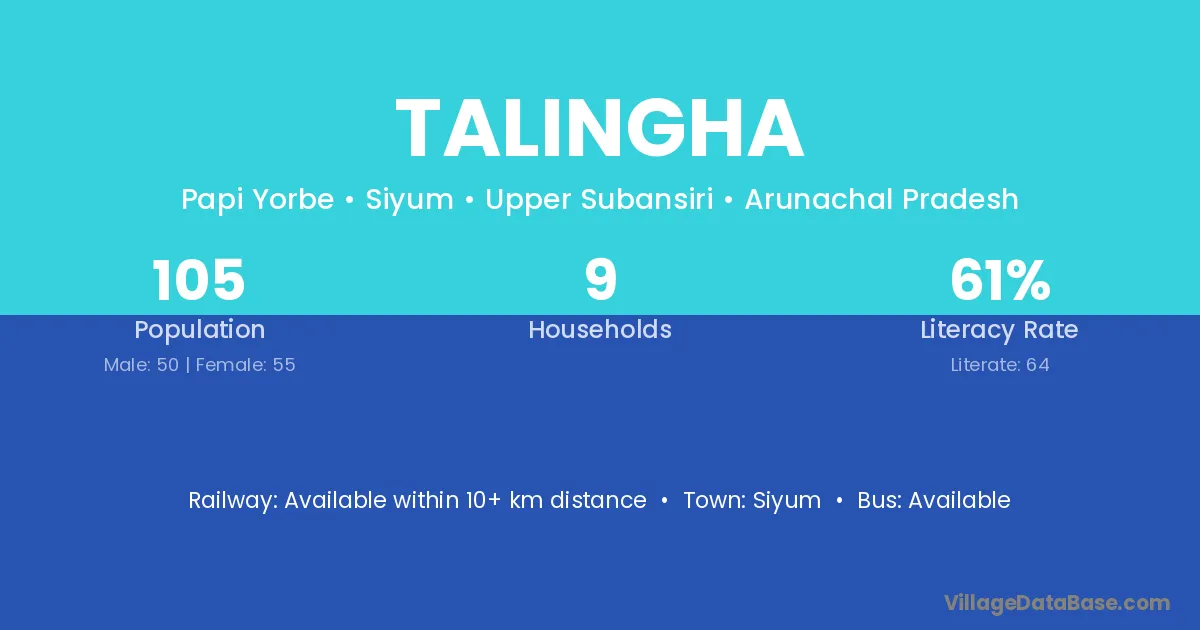 Talingha village has a total population of 105 people, of which 50 are males and 55 are females.