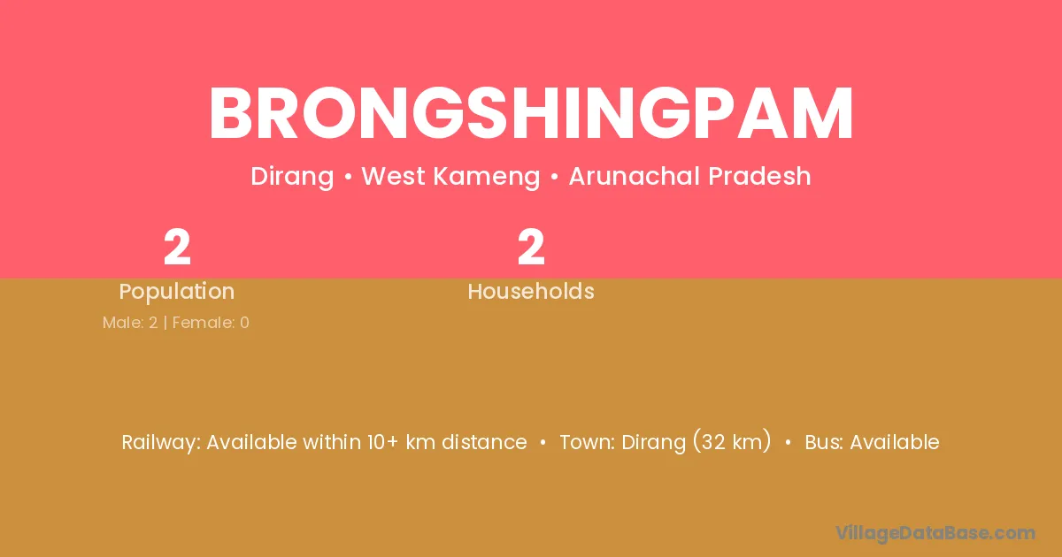 Brongshingpam village has a total population of 2 people, of which 2 are males and 0 are females.