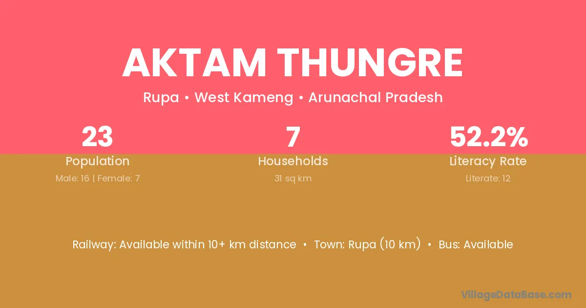 Aktam Thungre village has a total population of 23 people, of which 16 are males and 7 are females.