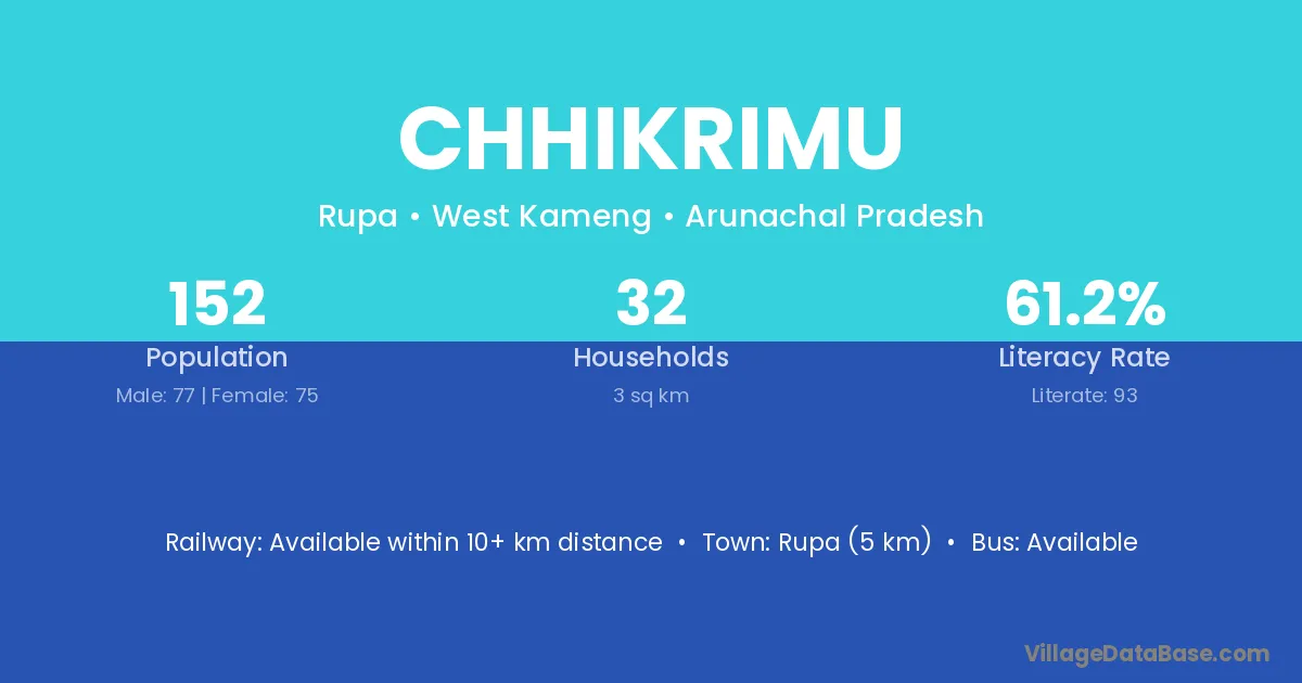 Rupa (5 km) is the nearest town to Chhikrimu village for major economic activities and is located approximately 5 km away.