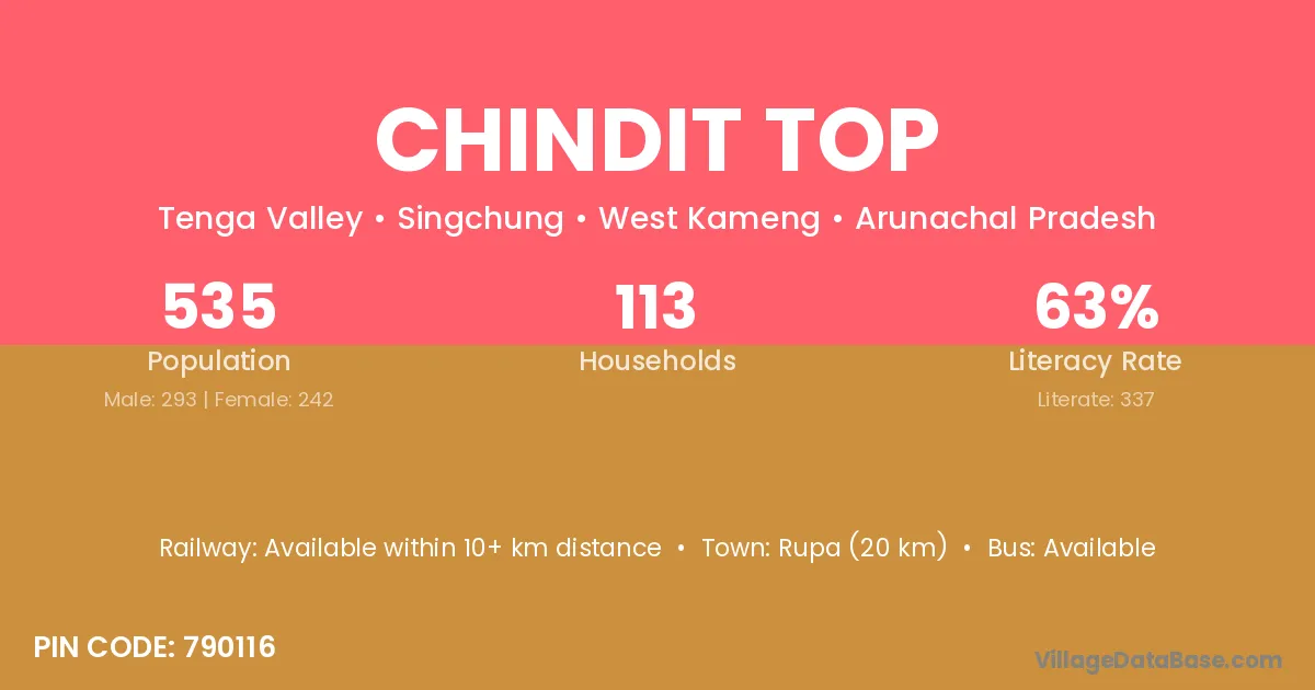Chindit Top village has a total population of 535 people, of which 293 are males and 242 are females.