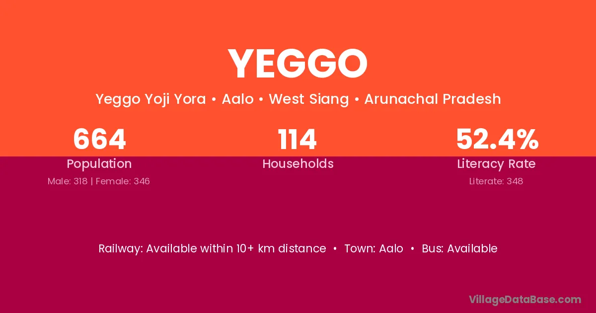 Yeggo village has a total population of 664 people, of which 318 are males and 346 are females.