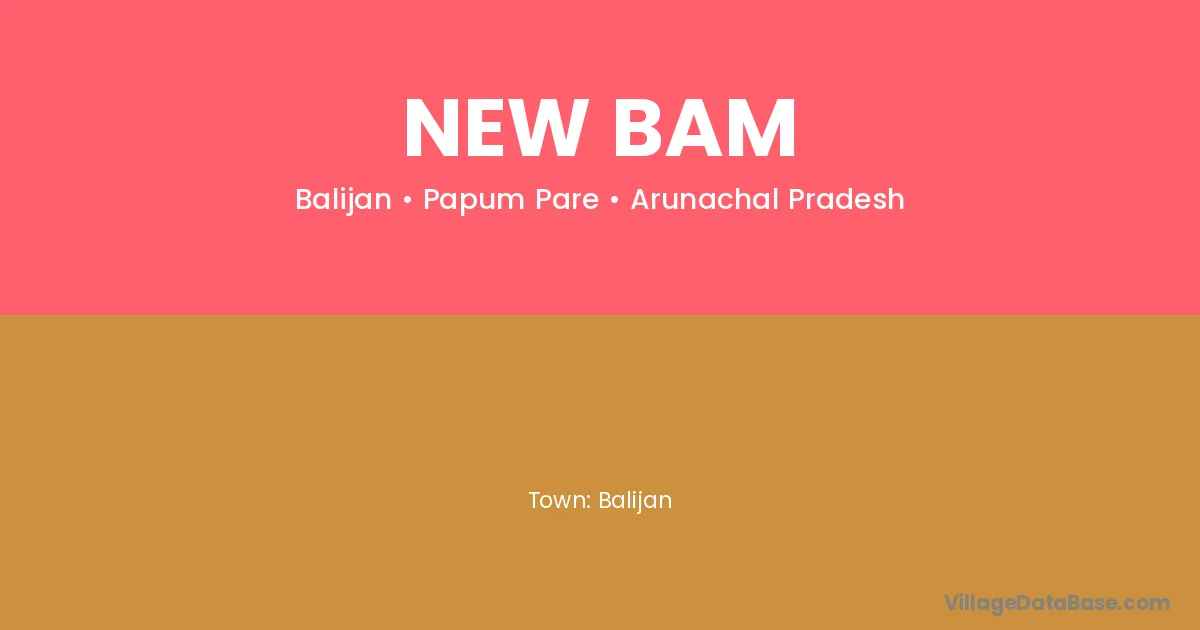 The literacy rate of New Bam village is 65.82%. Male literacy stands at 71.67% and female literacy at 59.83%.