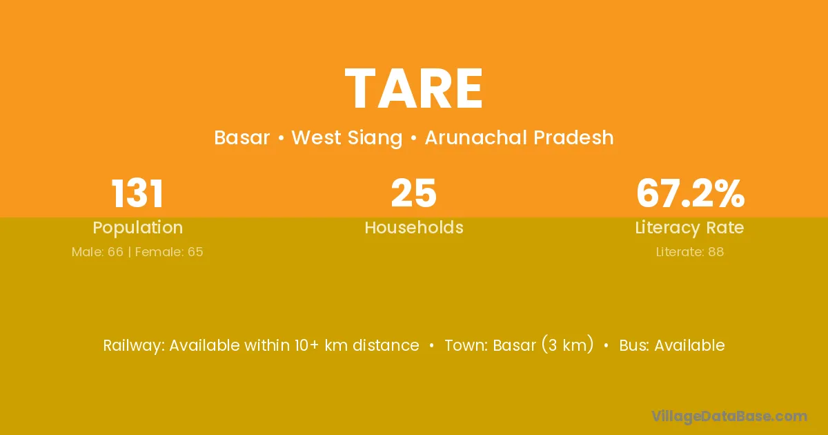 Tare village has a total population of 131 people, of which 66 are males and 65 are females.