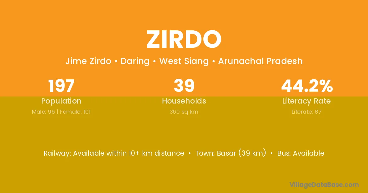 Basar (39 km) is the nearest town to Zirdo village for major economic activities and is located approximately 39 km away.