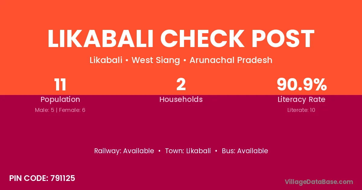 Likabali Check Post village has a total population of 11 people, of which 5 are males and 6 are females.