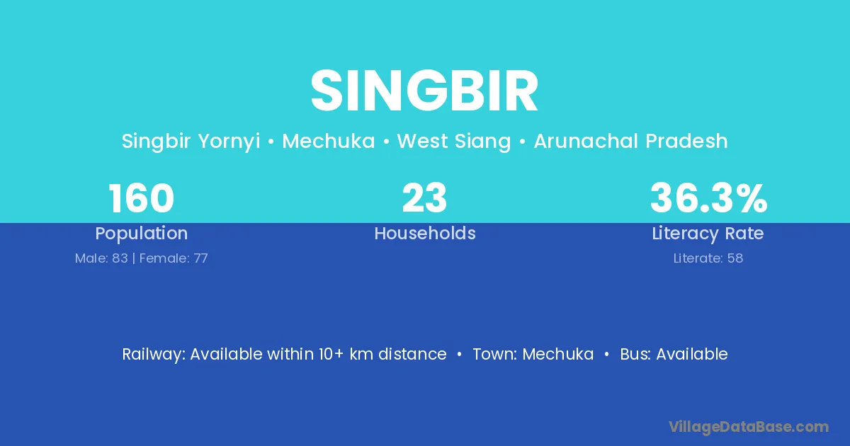 Singbir village has a total population of 160 people, of which 83 are males and 77 are females.